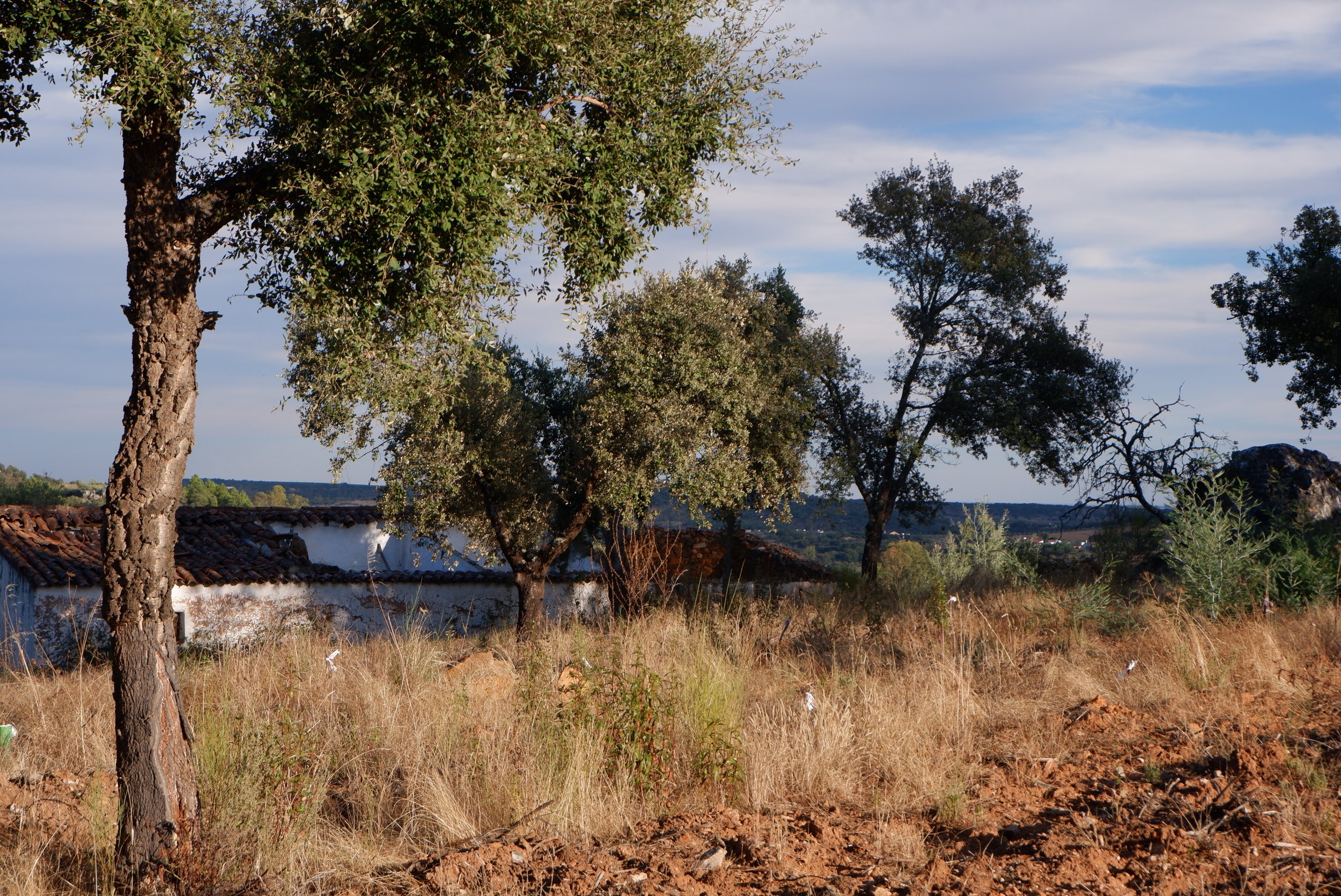 The context is crucial, not only due to the surrounding landscape but also the presence of protected rock outcrops, diverse tree species, and vegetation typical of this area of the Alentejo region.